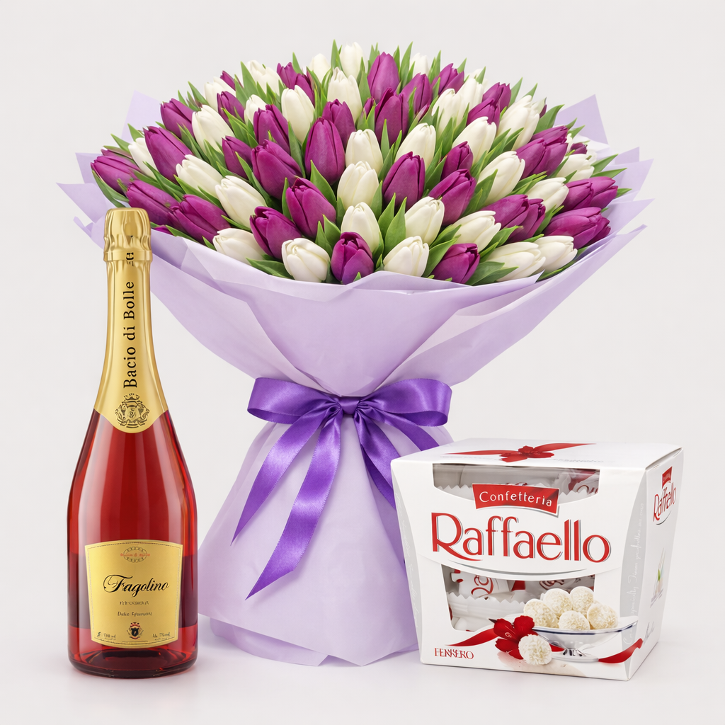 Buchet 101 Lalele Liliac Mix