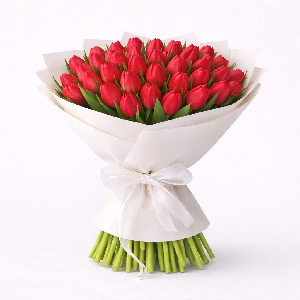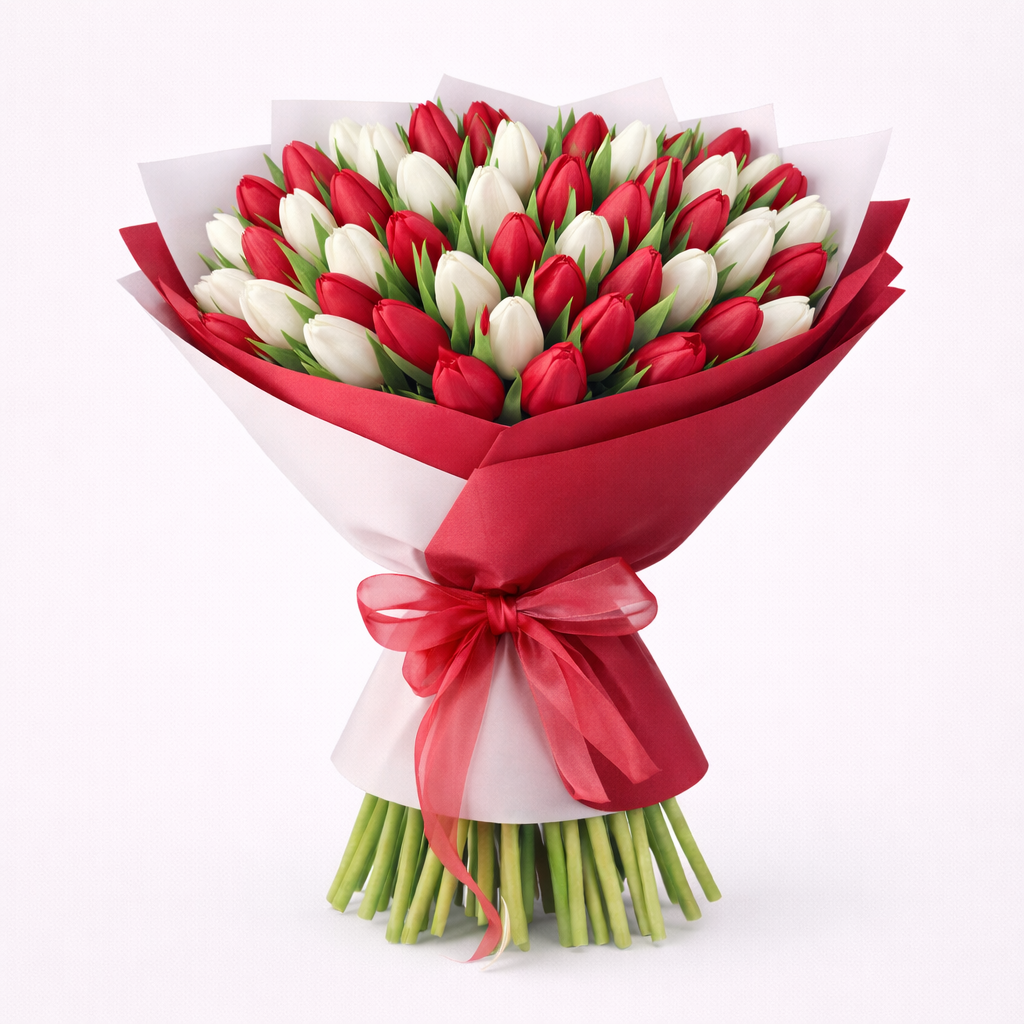 2.499,00 MDL2.290,00 MDLBouquet of 51 red and white tulips. A wonderful spring gift. A bouquet of fresh fragrant tulips is ideal for March 8th.