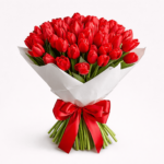 Un buchet luxos de 101 lalele roșii într-un pachet este un cadou câștigător pentru orice ocazie.
