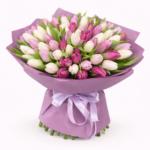 Un buchet vibrant și plin de prospețime, realizat din lalele albe și roz în nuanțe armonioase. Contrastul delicat dintre alb pur și roz romantic creează un aranjament modern, elegant și plin de energie pozitivă.