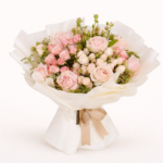 Buchet elegant de trandafiri roz și flori albe, perfect pentru surprize romantice. Livrare rapidă de flori în Chișinău și Moldova, direct la domiciliu.