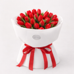 Un buchet luxos de 101 lalele roșii într-un pachet este un cadou câștigător pentru orice ocazie.